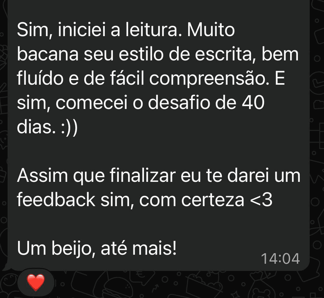 É um livro prático para tirar você do “eu sei o que tenho que fazer, mas não faço” e colocar você em ação ainda hoje, com um passo por dia, por 40 dias.